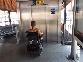 Archivo - Una mujer en silla de ruedas preparada para usar un ascensor - COCEMFE - Archivo