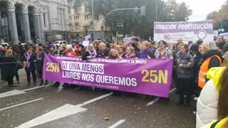Decenas de miles de mujeres se han manifestado este domingo en Madrid para pedir el fin de la violencia de género hacia las mujeres y la abolición de la prostitución, con motivo de la celebración, este 25 de noviembre, del Día Internacional de la Eliminación de la Violencia contra la Mujer.
