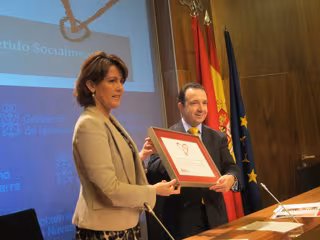 El primer sello 'Comprometido Socialmente' ha sido entregado este mismo lunes por la presidenta Barcina a La Caixa, por su obra social. El encargado de recoger este reconocimiento ha sido su director ejecutivo territorial en Navarra, Aragón y La Rioja, Raúl Marqueta, quien se ha mostrado "orgulloso" de recibir esta distinción.