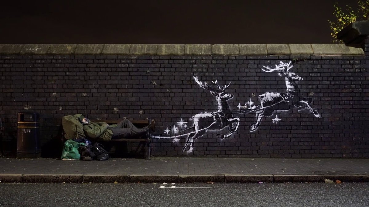 El artista callejero británico Banksy ha pintado un nuevo mural en la ciudad inglesa de Birmingham en la que dos renos que simbolizan la Navidad sirven para alertar de la situación de abandono de muchas personas sin hogar en Reino Unido.