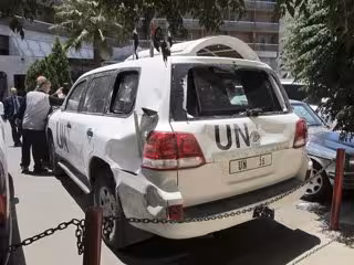 Los representantes de Naciones Unidas han visto humo saliendo de edificios destruidos y coches quemados. En la ciudad, que, aparentemente, ha sido objeto de fuertes bombardeos, solo han encontrado a dos personas, pero ninguna de ellas ha querido hablar sobre los recientes acontecimientos. En el suelo han hallado un cadáver abandonado.