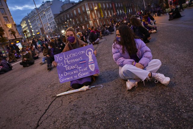 Varias mujeres participan en una concentración feminista con motivo del Día Internacional de la Mujer en la Plaza de Neptuno, en Madrid (España), a 8 de marzo de 2021. - Ricardo Rubio - Europa Press
