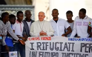 Tras realizar el tradicional recorrido en papa-móvil, el Pontífice se ha reunido con este grupo de refugiados procedentes de África, según señalan medios locales, que llevaban una pancarta en la que podía leerse 'Los refugiados, por un futuro juntos'. Al encontrarse han lanzado gritos de "Papa, Papa". Francisco ha hecho subir al palco a este grupo de refugiados.