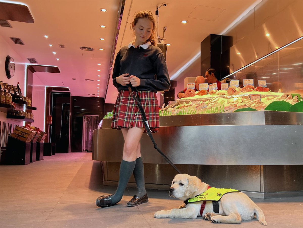 Archivo - Una joven acompañada de un perro guía en una pescadería. - ONCE - Archivo