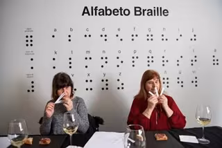 Según ha informado ONCE, 'El perfume del vino, experiencia olfativa' es una actividad de carácter científico, literario, artístico y filosófico que se ha iniciado con una introducción sobre los aromas en la que, mediante unas tiras de papel --como las que dan con los perfumes-- las personas ciegas han tratado de diferenciar esencias y, paralelamente, contrastar con el sentido el gusto a través de una copa de vino.