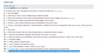 Una de las acepciones para la palabra 'negro' recogida en el diccionario de la RAE es la de "persona que trabaja anónimamente para lucimiento y provecho de otro, especialmente en trabajos literarios". Pero también hace referencia a adjetivos como "oscurecido, deslucido" o "muy sucio" o de "una sensación negativa" o también "infeliz, infausto y desventurado".