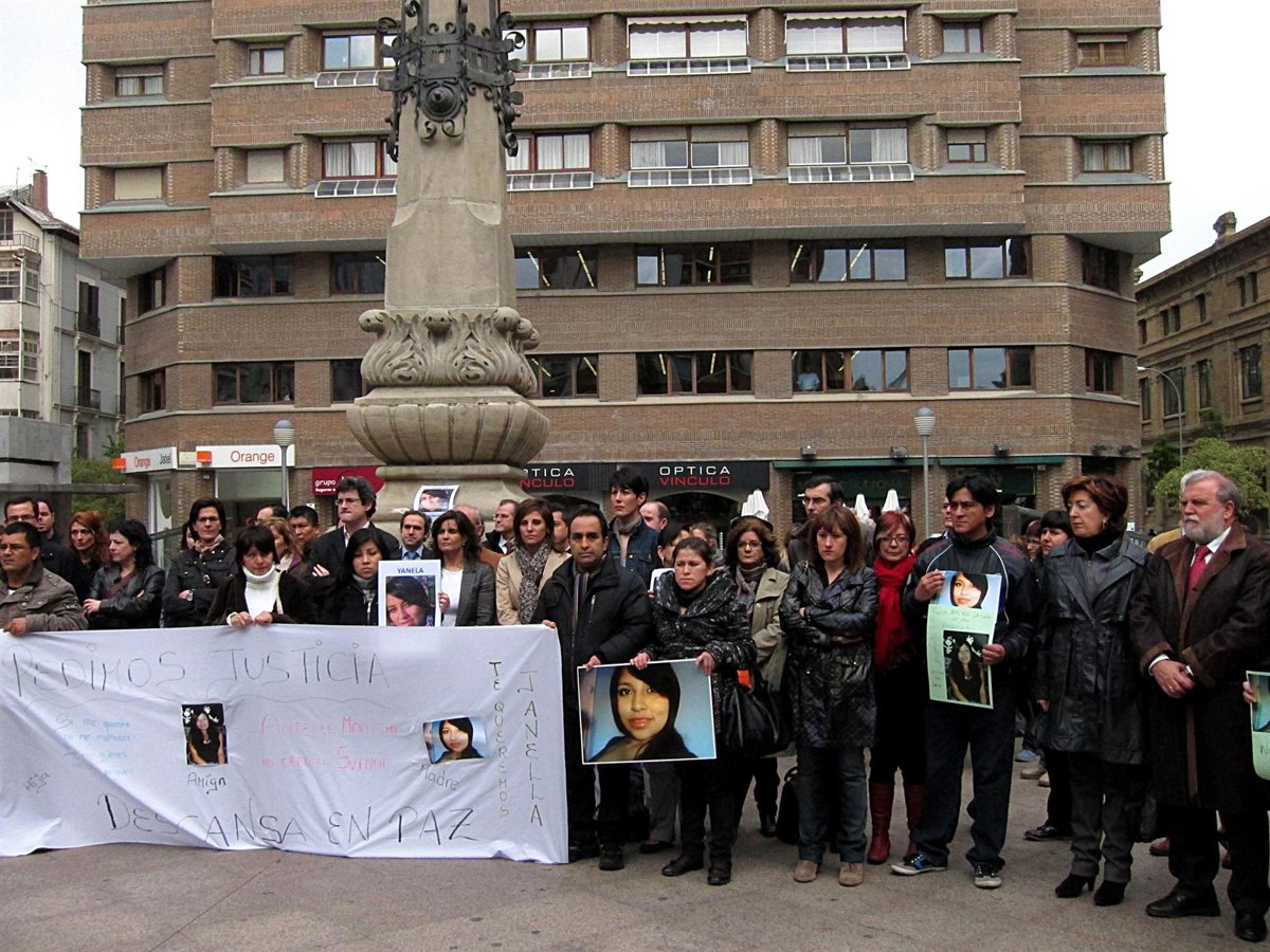 En el acto de repulsa por la muerte de la joven, original de Ecuador, también han estado sus padres, el abogado de la familia de Yanela Zaruma, Sergio Gómez, y el padre del joven ecuatoriano Darwin Fernando Piedra, cuyo cadáver fue hallado el pasado mes en el río Arga.