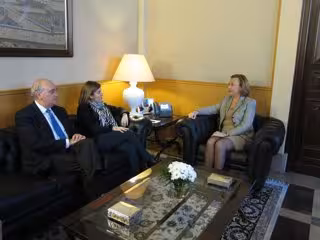 Posteriormente, Sáenz de Santamaría se ha trasladado hasta el Edificio Pignatelli, sede del Gobierno de Aragón, donde se ha reunido con la presidenta de la Comunidad autónoma, Luisa Fernanda Rudi.