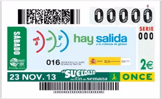 Los billetes llevan el lema 'Hay salida', 'slogan' de la campaña de sensibilización por una sociedad libre de violencia de género y que, por iniciativa de la Delegación del Gobierno para la Violencia de Género, se puede ver en los décimos de Lotería Nacional y en los cupones de la ONCE emitidos para el sorteo del próximo 23 de noviembre, en conmemoración del Día Internacional para la Eliminación de la Violencia contra la Mujer.
