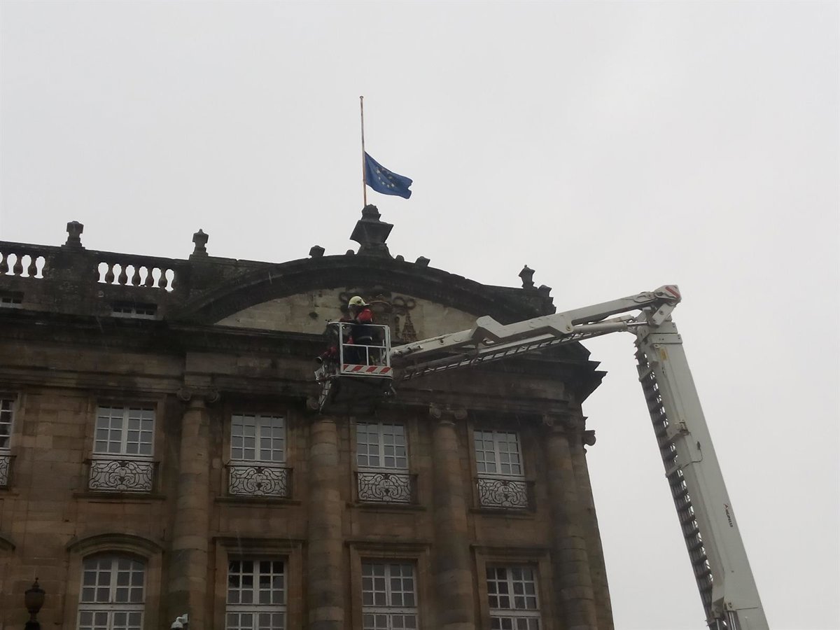Así, el Ayuntamiento de Santiago ha colocado a media asta la bandera de la Unión Europea, después de que este jueves todos los grupos municipales con representación en Santiago de Compostela --Compostela Aberta, PP, PSOE y BNG-- aprobaran, en el pleno ordinario que se celebró este jueves, que la bandera de la Unión Europea ondeara a media asta en la capital de Galicia.