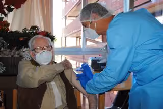 Antonio, de 90 años y natural de Bélmez de la Moraleda, ha sido el primero en recibirla en Jaén en la Residencia Mixta de Mayores de Linares, uno de los centros más grandes de España.. Linares, Jaén a 27 de diciembre 2020 - Junta de Andalucía