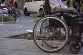Archivo - Una persona en silla de ruedas en la calle Consell de Cent, a 8 de septiembre de 2023, en Barcelona, Catalunya (España). - David Oller - Europa Press - Archivo