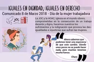 La Hermandad Obrera de Acción Católica (HOAC) y la Juventud Obrera Cristiana (JOC) se suman a los paros laborales convocados para el 8 de marzo, Día Internacional de la Mujer, con el objetivo de dar voz a las mujeres que sufren discriminación por un sistema que definen como "patriarcal, deshumanizador y contrario a los planes de Dios".