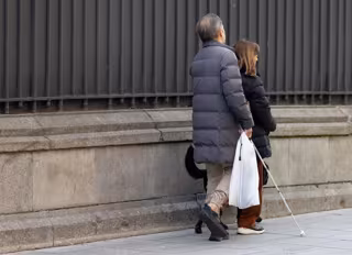 Archivo - Una persona con discapacidad visual camina acompañada por la calle, a 28 de enero de 2025, en Madrid (España). - Eduardo Parra - Europa Press - Archivo