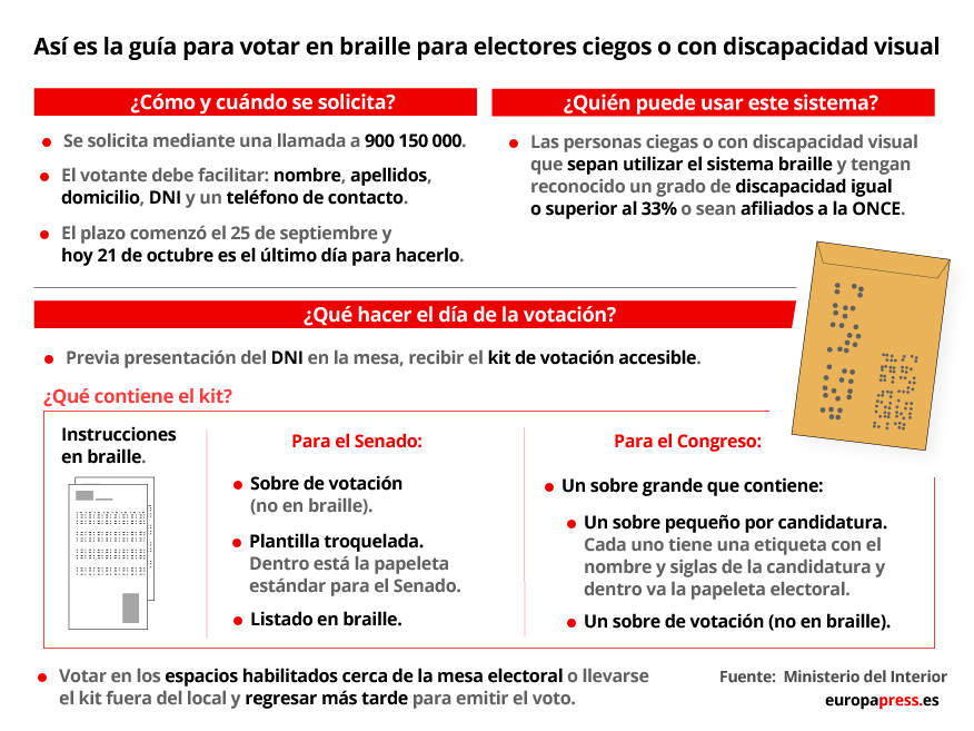 Guía para solicitar el kit de voto accesible para personas ciegas - EUROPA PRESS