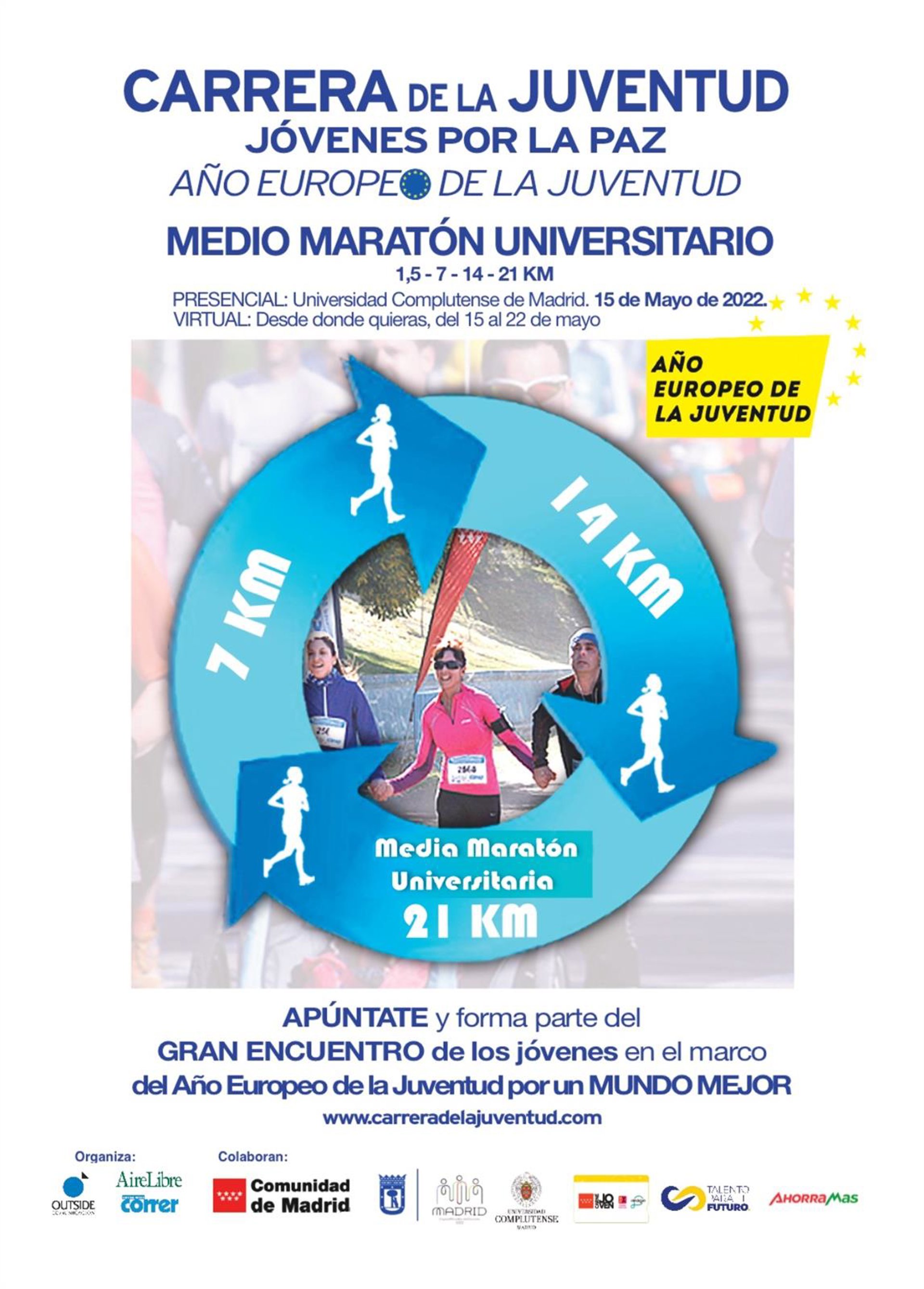 La 42 edición de la Carrera de la Juventud se celebrará este domingo 15 de mayo bajo el lema 'Jóvenes por la paz', en el marco de la tradicional Medio Maratón Universitaria de la Universidad Complutense de Madrid y dentro de los actos previstos con motivo del Año Europeo de la Juventud.