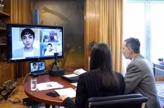 Los Reyes han mantenido esta mañana una videoconferencia con representantes del Consejo de la Juventud de España (CJE), en la que han participado el presidente, Manuel Ramos De la Rosa; la vicepresidenta, María Rodríguez Alcázar y el vicepresidente, Diego Vázquez Ayala, quienes han trasladado a Sus Majestades como está afectando a este colectivo la crisis provocada por el Covid-19 y las acciones que están realizando.