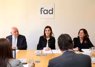 En el encuentro, la Reina ha estado acompañada por el presidente de FAD, Ignacio Bayón; la directora general de FAD, Beatriz Martín Padura; y diversos miembros de FAD, según han detallado desde la institución.