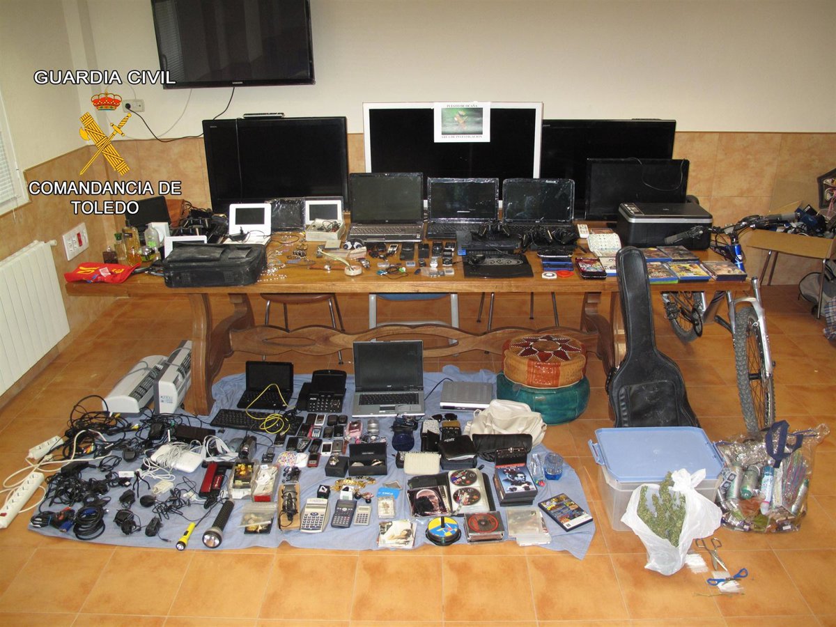 Entre el material recuperado hay 7 ordenadores, 3 cámaras fotográficas digitales, 10 relojes, 26 teléfonos móviles y fijos, 2 reproductores de DVD, un e-book, 2 video cámaras, 3 calculadoras, una colección de sellos y otra de monedas antiguas, 10 cargadores de móviles, una bicicleta, 2 videoconsolas Playstation, una consola Nintendo, 6 bolsos y carteras de mujer, una guitarra, joyeros, perfumes, joyería y bisutería, mochilas y otros efectos. Los detenidos han pasado a disposición del Juzgado número 1 de Ocaña y de la Fiscalía de Menores de Toledo.