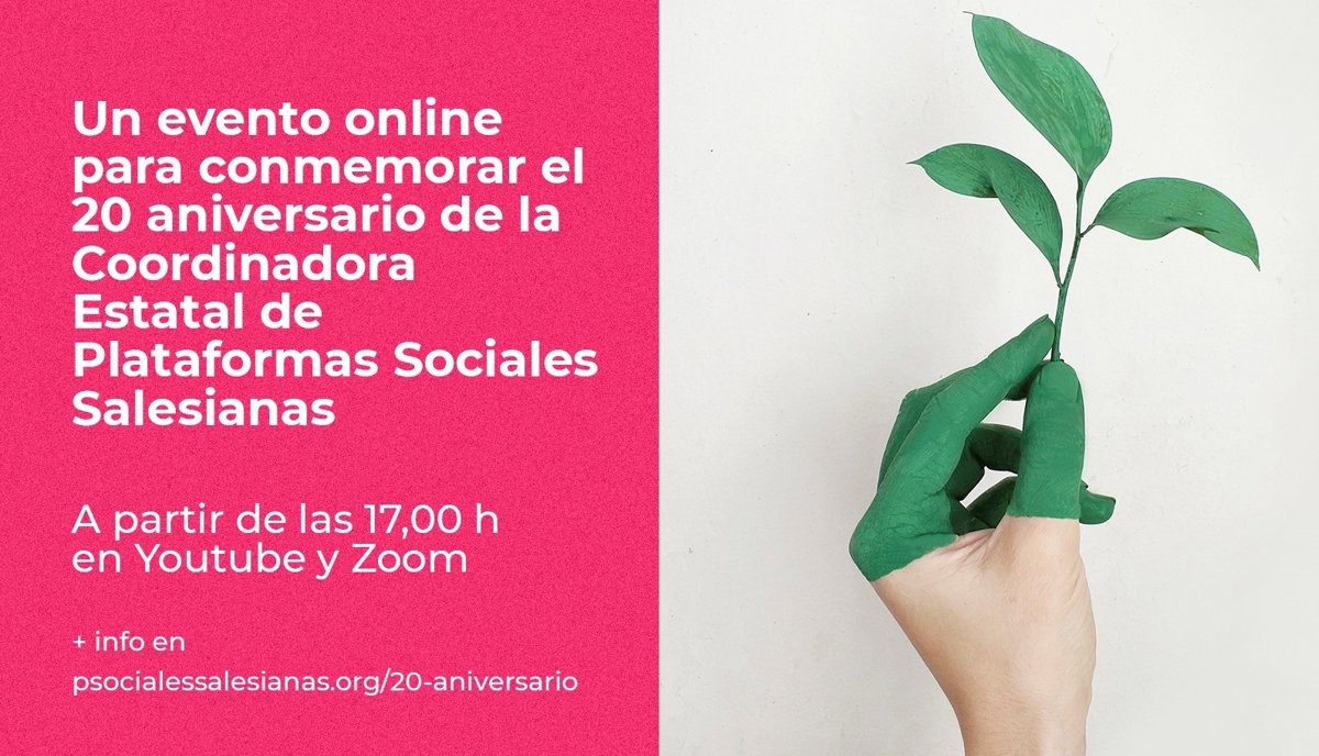 Imagen del cartel del evento de Plataformas Sociales Salesianas por su 20 aniversario - PLATAFORMAS SOCIALES SALESIANAS