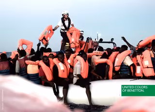 El grupo de moda italiano Benetton ha provocado una ola de indignación con una polémica campaña de publicidad en la que usa imágenes de los migrantes del Aquarius. En las fotos, que han sido publicadas por la marca en Twitter, puede verse algunos de los rescatados del mar con chalecos naranjas y el logo de United Colours of Benetton sobreimpreso en la imagen.