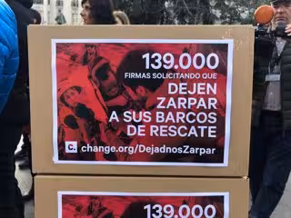 "Por eso amarra nuestros barcos, por eso presiona al la 'Seawatch', al 'Lifeline', pero aquí estamos presentando firmas para decirles que no tendrán testigos en el agua, quizás en una semanas, pero volveremos y tendrán testigos en las costas, tendrán testigos en las plazas, luchando para que las personas migrantes puedan vivir en paz", ha señalado el patrón del buque vasco.