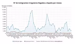 Se mantiene así la tendencia a la baja en esta materia que se viene contabilizando desde el mes de septiembre del año pasado y que son consecuencia de la caída de entradas de migrantes de forma irregular en el país por vía marítima y, especialmente, a través de las costas del archipiélago Canario.