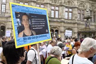 02 July 2019, Austria, Vienna: People hold placards during a demonstration to call on the Italian authorities to release Sea Watch captain Carola Rackete. Photo: Hans Punz/APA/dpaHans Punz/APA/dpa