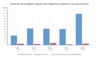Finalmente, han aumentado las llegadas por vía terrestre en ambas ciudades autónomas, ya que un total de 1.172 personas entraron de forma irregular (1.154 en Ceuta y 18 en Melilla), un 151,4% más y el 66% menos que el año pasado respectivamente.