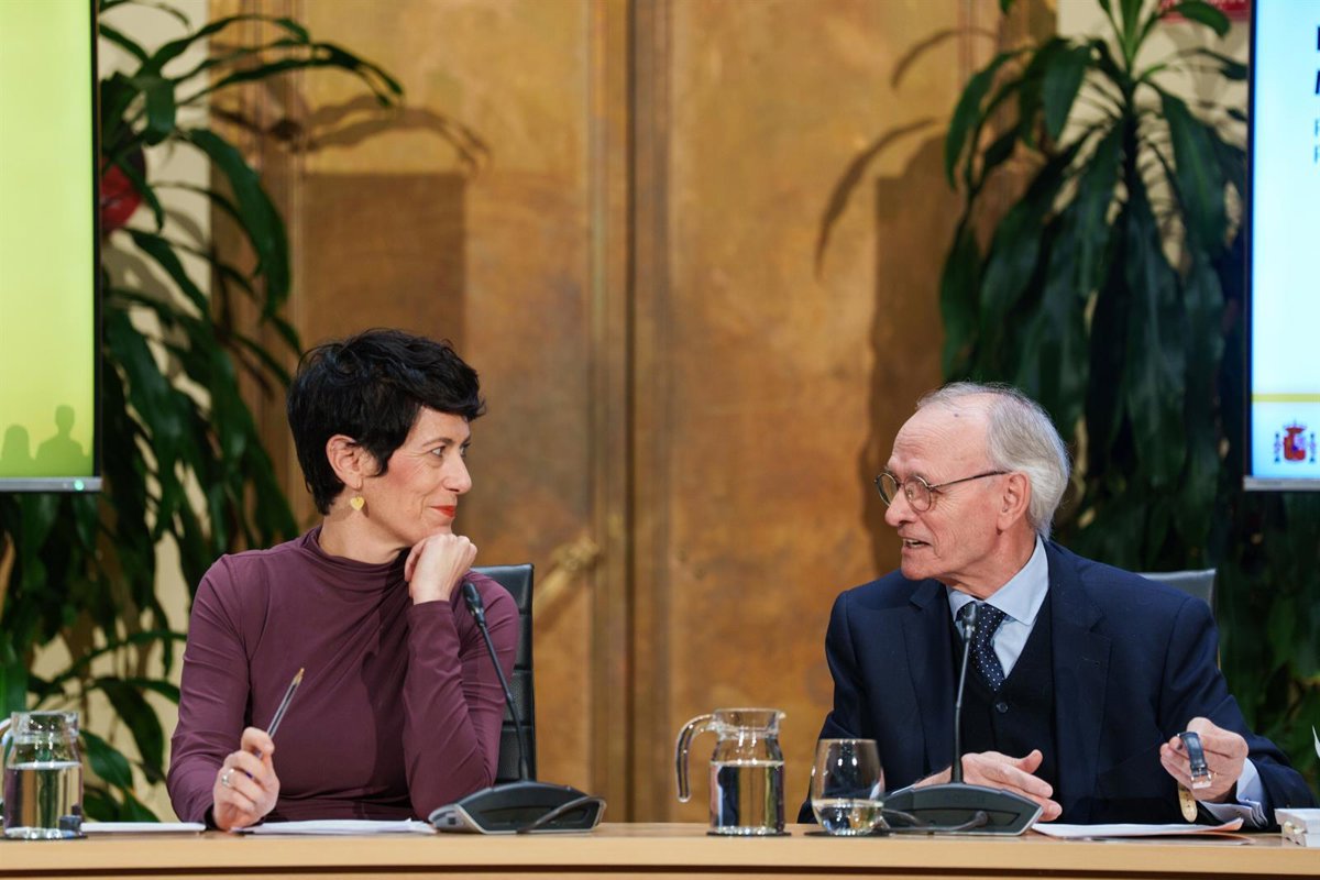 La ministra de Inclusión, Seguridad y Migraciones, Elma Saiz y el presidente del Consejo Económico y Social, Antón Costas, presentan el Informe sobre la realidad migratoria en España, a 12 de noviembre de 2025, en Madrid (España). - Matias Chiofalo - Europa Press