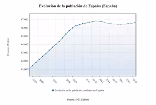 Según ha explicado Vega, a fecha 1 de enero de 2012 se alcanzó el máximo de la serie con 46.818.216 habitantes. A partir de ese año y hasta 2015, fue descendiendo, aunque en 2016 se produjo un aumento que en 2017 ha continuado. "La tendencia parecer ser que es a crecer más, pero las tendencias son tendencias hasta que se terminan", ha manifestado.