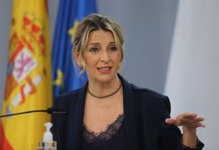 La vicepresidenta segunda y ministra de Trabajo y Economía Social, Yolanda Díaz, comparece tras la reunión del Consejo de Ministros, en el Complejo de la Moncloa, a 22 de febrero de 2022, en Madrid (España). - EUROPA PRESS/I.Infantes. POOL - Europa Press