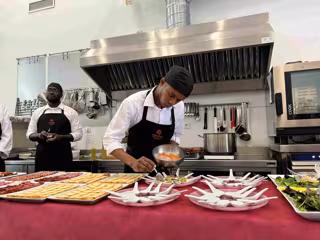 Una persona migrante trabaja en una cocina. - CÁRITAS.