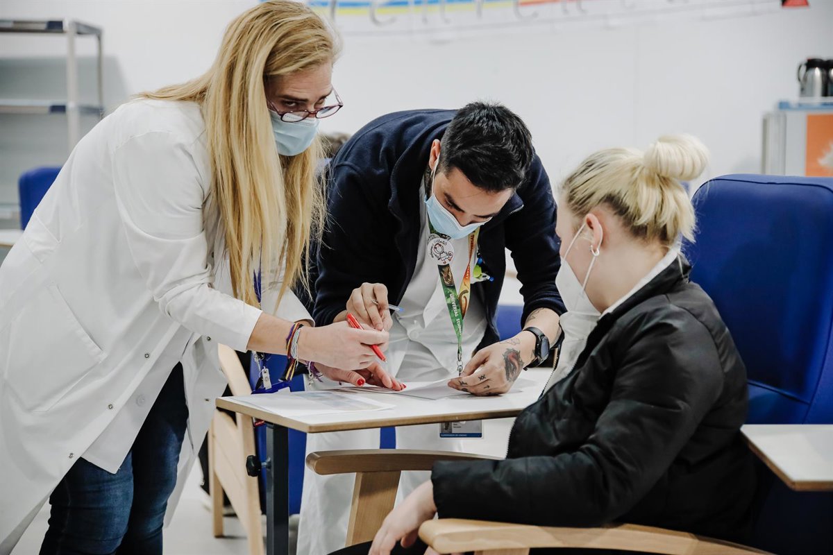 Archivo - Dos sanitarios registran a una mujer refugiada, a su llegada al Hospital Isabel Zendal - Carlos Luján - Europa Press - Archivo