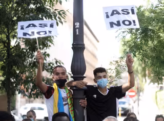 Archivo - Dos jóvenes con un cartel en el que se lee: `Así no!, en una concentración frente al Ministerio del Interior para exigir la reforma del Reglamento de Extranjería, a 10 de septiembre de 2021, en Madrid. - Eduardo Parra - Europa Press - Archivo