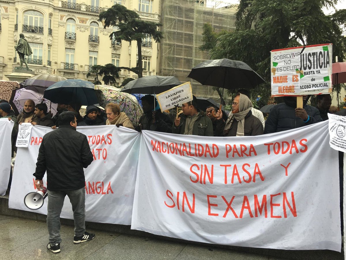 Decenas de inmigrantes dedicados a la venta ambulante en Madrid, Valencia, Barcelona y Zaragoza, se han concentrado este jueves, 15 de diciembre, ante el Congreso de los Diputados para pedir la despenalización de esta práctica y que pase a ser considerada como una falta administrativa.