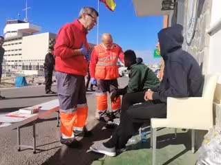 Migrantes de la patera que llegó a Alfs del Pi el sábado reciben asistencia en el Puerto de Alicante - CRUZ ROJA - Archivo