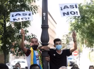 Archivo - Dos jóvenes con un cartel en el que se lee: `Así no!, en una concentración frente al Ministerio del Interior para exigir la reforma del Reglamento de Extranjería - Eduardo Parra - Europa Press - Archivo