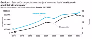 "La nueva normativa aspira, según el Gobierno, a regularizar a 900.000 extranjeros en el trienio 2025-2027. Incluso aunque se cumpliera este objetivo, si las pautas de migración y de regularización no vinculadas al arraigo mantuvieran la dinámica actual, las estimaciones apuntan a que el número de residentes en situación irregular no disminuiría, sino que tendería a estabilizarse", concreta.