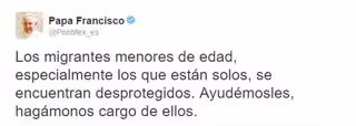 “Los migrantes menores de edad, especialmente los que están solos, se encuentran desprotegidos. Ayudémosles, hagámonos cargo de ellos”, ha exhortado el Papa en el primero de los mensajes lanzados en esta red social.