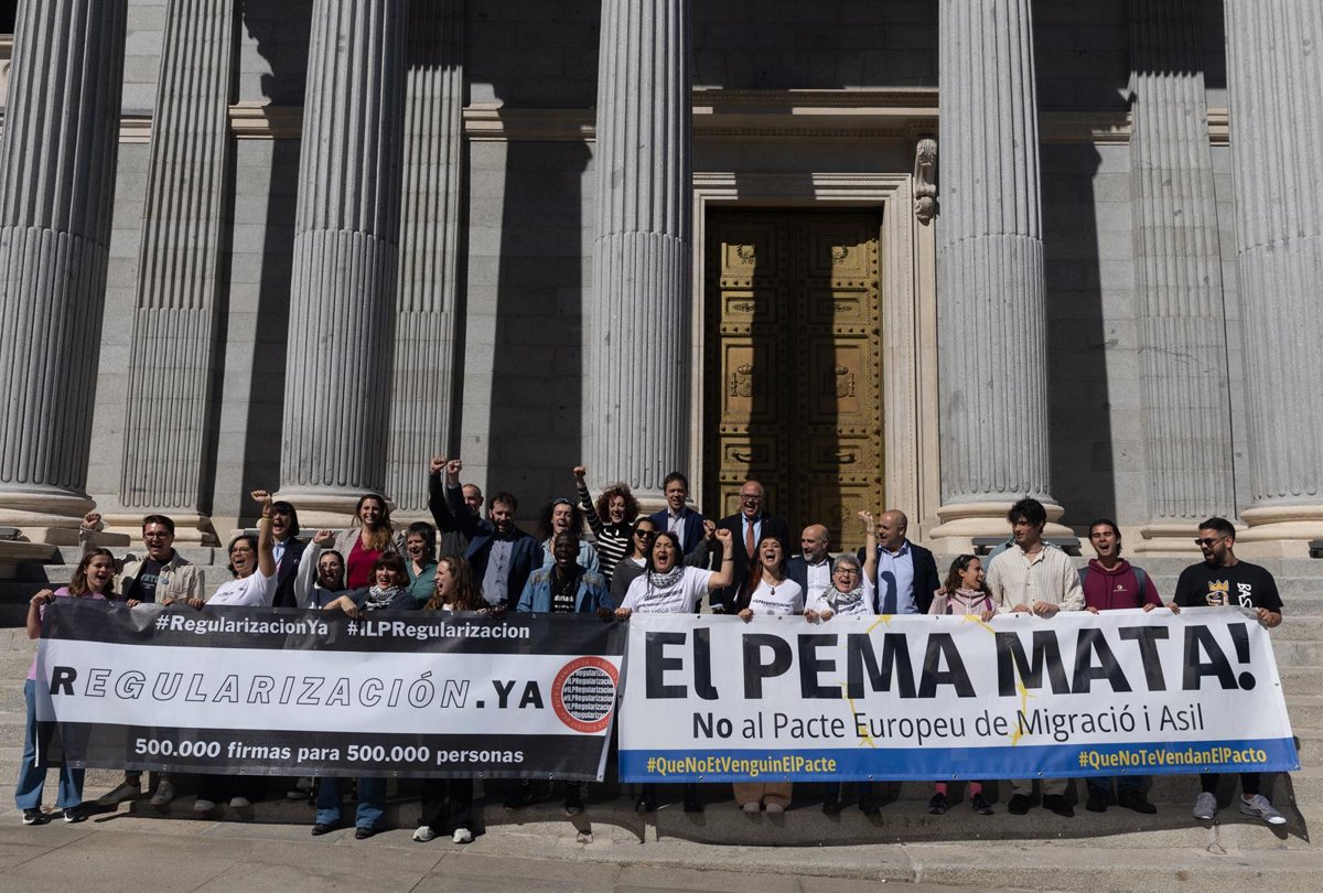 Archivo - Varias personas se concentran frente al Congreso en defensa de la ILP RegularizaciónYa mientras se debate la iniciativa en el Congreso, a 9 de abril de 2024, en Madrid (España). El Congreso debate este martes 9 de abril la toma en consideración - Eduardo Parra - Europa Press - Archivo