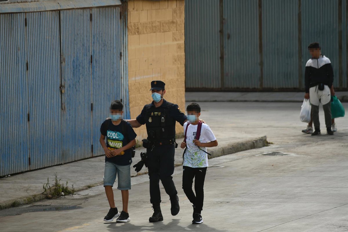 Agentes de la Policía Nacional acompañan a menores marroquíes - Antonio Sempere - Europa Press