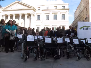 Medio centenar de personas empresarios, trabajadores y familiares se han concentrado ante el Congreso de los Diputados para reclamar el pago de esta deuda y han escenificado la situación en la que se encuentran con 20 sillas de ruedas vacías con los nombres de personas dependientes, la edad y la enfermedad. Se trata del tercer paro realizado en las última semanas por el sector, tras los llevados a cabo en Valencia y Toledo.