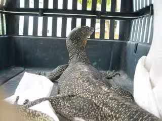 Agentes Rurales de la Conselleria de Agricultura, Ganadería, Pesca, Alimentación y Medio Natural de la Generalitat de Cataluña han capturado este miércoles un varano de la sabana que se encontraba dentro del huerto de una finca en Llagostera (Girona), que ha sido trasladado en perfecto estado al Centro de Recuperación de Anfibios y Reptiles de la región.