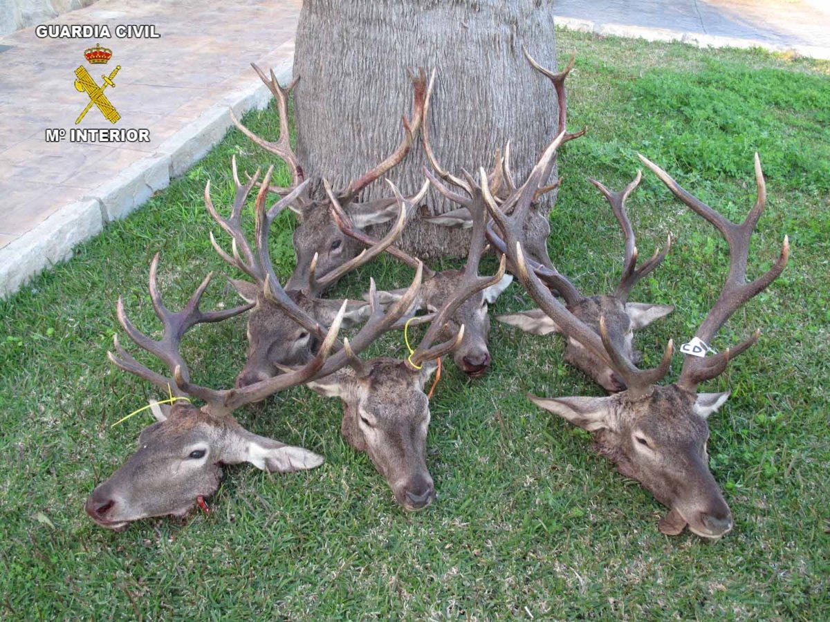 Agentes de la Guardia Civil, pertenecientes a la patrulla del Seprona (Servicio de Protección de la Naturaleza) de Castellar de la Frontera (Cádiz), han intervenido ocho cabezas de ciervo macho que fueron abatidos en una montería en la que solo estaba autorizada la caza de hembras y crías de ciervo.