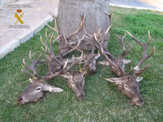 Según ha informado el Instituto Armado en un comunicado, tras realizar una vigilancia de una montería celebrada en un coto situado en el término municipal de Jimena de la Frontera, la cual solo estaba autorizada para abatir ejemplares de hembras y crías de ciervo, se intervinieron ocho cabezas de ciervo macho que acababan de ser abatidos.