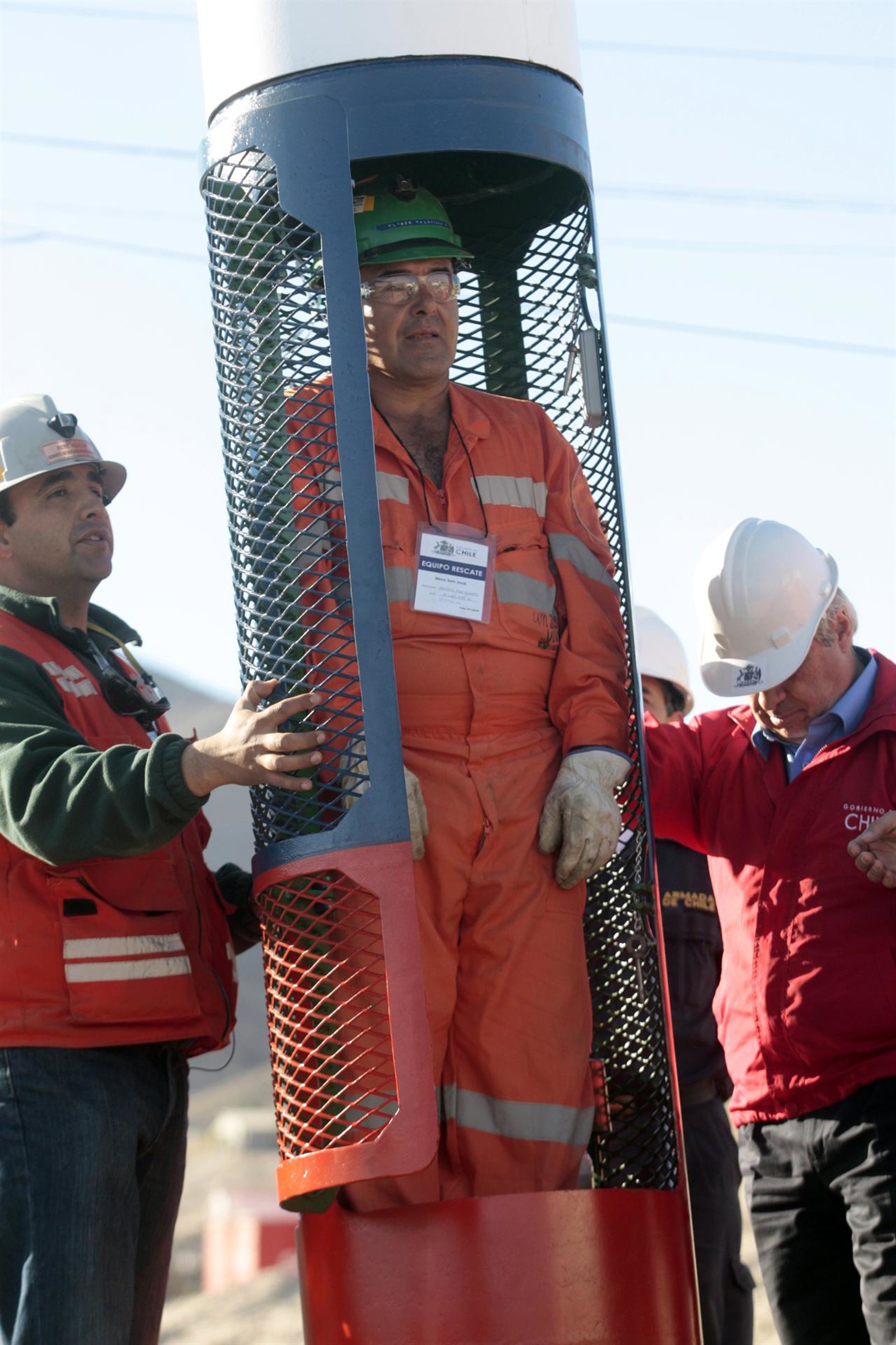 tres cápsulas y los conductos que transportarán a la superficie a los 33 mineros