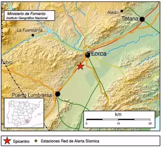 El Instituto Geográfico Nacional ha confirmado que a las 22.47 horas tuvo lugar un movimiento sísmico de magnitud 2 con epicentro al Sur Oeste de Lorca. El movimiento fue sentido en este término municipal y en el municipio de Puerto Lumbreras.