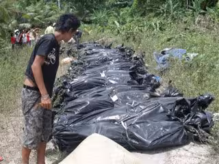 Bolsas de cadáveres tras el tsunami en la islas Mentawai, en Indonesia