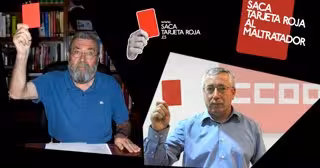 Los secretarios generales de UGT y Comisiones Obreras, Cándido Méndez e Ignacio Fernández Toxo, se han sumado este jueves a la campaña del Ministerio de Igualdad "saca tarjeta roja al maltratador" para mostrar su repulsa a la violencia de género.